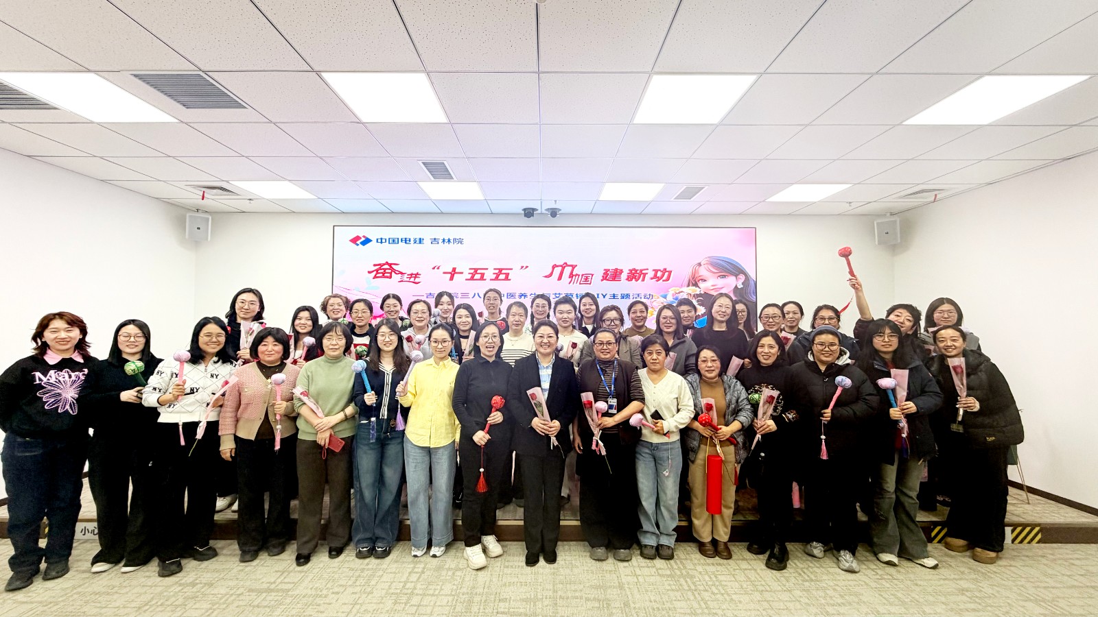 阳春三月,万物生辉。为庆祝第116个“三八”国际劳动妇女节,展现女职工昂扬向上的精神风貌,增强团队凝聚力与幸福感,公司于3月6日举办了以“奋进‘十五五’ 巾帼建新功”为主题的中医养生与艾草锤DIY活动。公司女性职工齐聚一堂,共度温馨而有意义的节日时光。 活动在轻松愉快的氛围中拉开帷幕。首先由资深中医师为女职工带来一场内容丰富的中医养生科普讲座,围绕春季气血养护、睡眠调理、情绪舒缓、四季养生要点及办公室养生技巧等实用内容展开讲解,并结合艾草的养生原理,帮助大家更好地关注自身健康,提升生活品质。讲座过程中,女职工们积极互动,现场气氛热烈。 随后进入“悦己时光”艾草锤DIY环节。在讲师的指导下,大家亲手制作属于自己的艾草养生锤。从团锤头、安锤把,到裹棉布、缠棉绳,每一步都充满巧思与专注。大家在动手实践中放松身心,感受手作的乐趣与成就感,现场欢声笑语不断,温馨融洽。最后,全体女职工手持自制的艾草锤,在主题背景板前合影留念,定格下这一美好时刻。 此次主题活动不仅让女职工们在繁忙工作之余放松了身心、收获了健康知识,更在动手实践中增进了彼此交流,提升了团队凝聚力。大家纷纷表示,将以更加饱满的热情和积极的心态投入工作,在“十五五”新征程中继续发挥“半边天”作用,为吉林院高质量发展贡献巾帼力量。